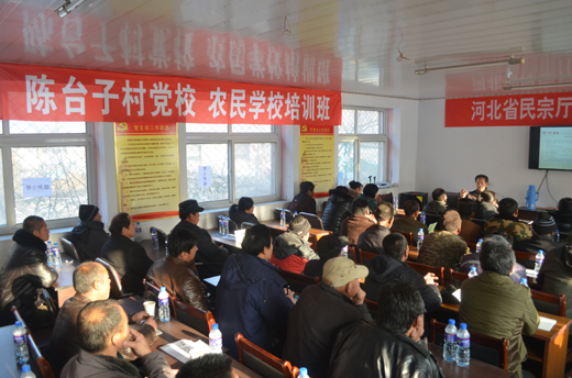 2016年12月16日至20日,我校驻陈台子村工作组在陈台子村党校、村农民学校举办冬季农业技术培训班,分别邀请我校园艺科技学院齐永顺、生命科技学院侯东军、动物科技学院吴建华讲授了板栗树和苹果树管理技术、木耳培育技术、年猪养殖技术。此次培训得到贫困村群众普遍欢迎,除了帮扶村陈台子村群众积极参加外,还吸引了大巫岚镇很多村群众赶来听讲,参训群众达到360余人次。