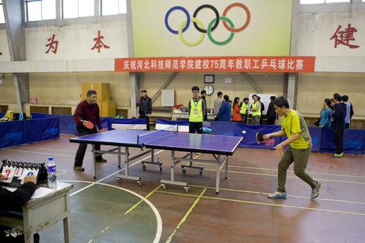 2016年11月5日,我校庆祝建校75周年教职工乒乓球比赛在昌黎校区体育馆举行。校党委副书记宋绍富为比赛开球并致辞。