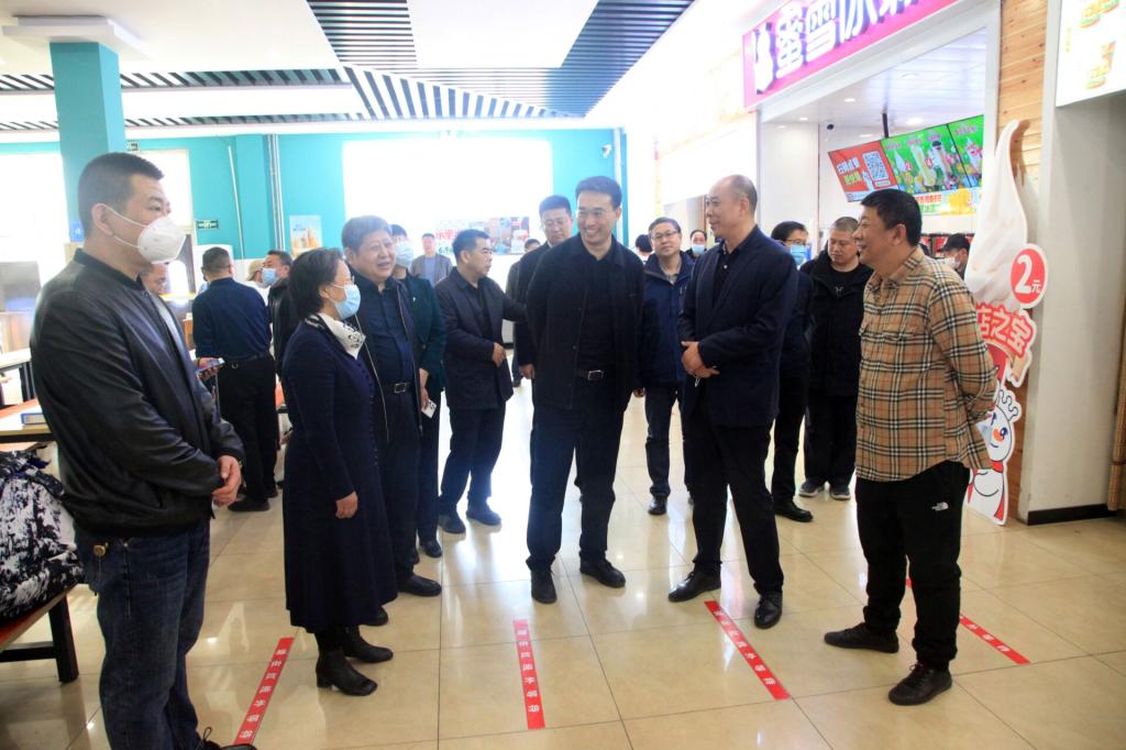 2023年3月31日上午,秦皇岛市副市长李国强、副秘书长秦继革及市教育局主要负责同志、市场监管局分管负责同志、开发区管委会分管负责同志及相关部门负责人、市内兄弟院校主管餐饮工作相关校级领导等到我校开发区校区检查指导食堂工作。我校副校长杨越冬及校长(党委)办公室、安全工作处、大学生服务中心相关负责同志任陪同检查。