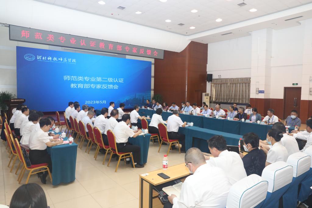 5月31日上午,我校在秦皇岛校区学术交流中心召开师范类专业第二级认证教育部专家反馈会。专家组联合组长兼数学与应用数学专业专家组组长林松柏教授同小学教育专业、汉语言文学专业、化学专业、英语专业共五个师范类专业认证专家组全体成员,校领导朱勇、郭旭涛、杨越冬、冯瑞银、蒋爱林出席会议。各职能部门、教辅科研单位负责人,申报专业所在二级学院领导班子成员、专业带头人、任课教师,其他师范类专业所在院系负责人、专业带头人及相关教师,公共课院系负责人参加会议。会议由林松柏组长主持。