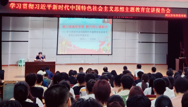 为营造深入学习贯彻习近平新时代中国特色社会主义思想主题教育浓厚氛围,扎实推进主题教育走深走实、入脑入心,本年度我校继续选派由党委宣传部、马克思主义学院党员干部、思政课教师组成的思想政治理论教育宣讲团,深入全校各基层党委(党总支)开展“深入学习贯彻习近平新时代中国特色社会主义思想”主题宣讲活动。
