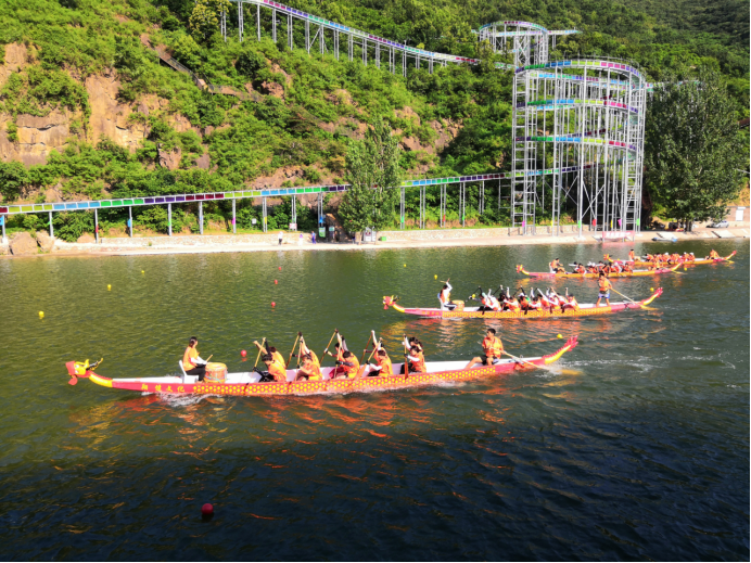 2023年6月22日端午节当天,秦皇岛市第九届龙舟大赛在老君顶景区举行。来自秦皇岛市高校及各社会组织的39支代表队500余名运动员参加了比赛。我校派出了由体育与健康学院教师和40名学生组成的3支龙舟代表队参加比赛并获得优异成绩。