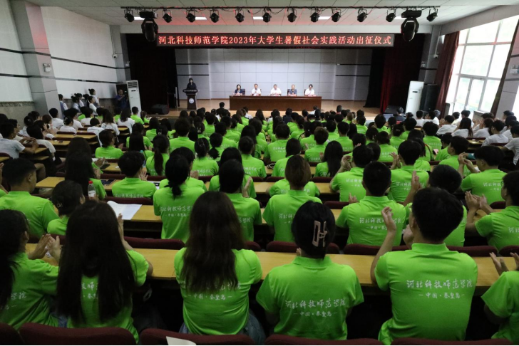 2023年7月7日下午,我校2023年“学习二十大,永远跟党走,奋进新征程”大学生暑期社会实践出征仪式在秦皇岛校区多功能厅隆重举行,校党委常委、副校长蒋爱林,党委宣传部、学工部、教务处、校团委负责同志以及各院(系)主管学生工作负责人、团委书记出席仪式,各团队指导教师及学生代表共计300余人参加活动。