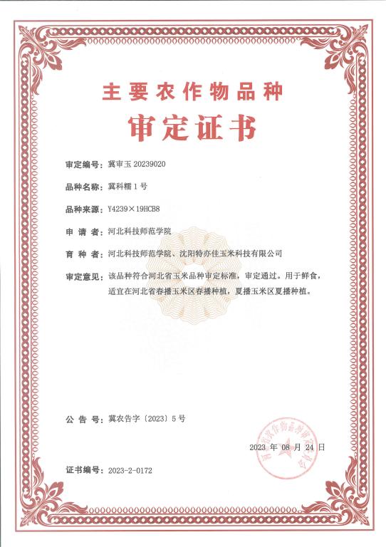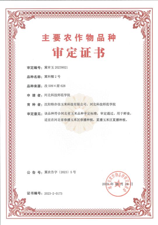 近日,我校农学与生物科技学院王健博士领衔的特种玉米育种团队育成的“冀科糯1号”和“冀科糯2号”,通过河北省主要农作物品种审定(公告号:河北省农业农村厅公告2023年第5号),审定编号分别为:冀审玉20230920、冀审玉20239021,这是我校有史以来首次通过省级审定的两个玉米新品种,填补了我校玉米种质创新领域的空白,标志着我校在玉米种质创新方面取得新突破。