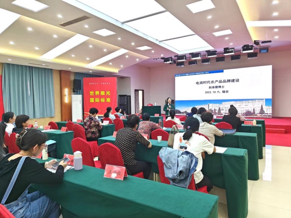 2023年10月9日,我校工商管理学院赵春霞博士在雄安新区为60位河北省巾帼现代农业科技示范基地负责人作“电商时代农产品品牌建设”专题讲座。讲座内容从“共同富裕”和“乡村振兴”的时代背景出发,分别介绍了全国以及河北省农产品电商的发展现状以及农产品品牌的发展现状与问题,最后从八个方面提出了河北省发展农产品品牌的思路与对策。