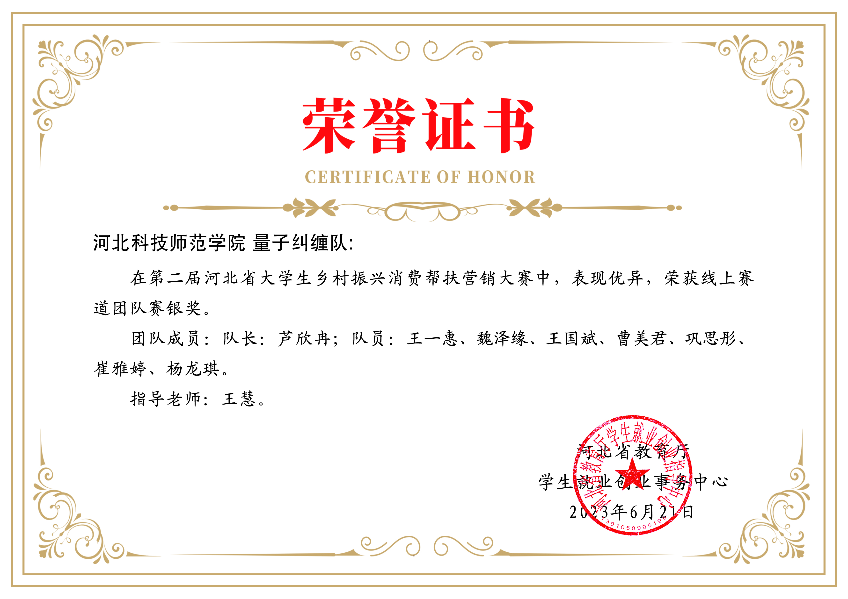 近日,第二届河北省大学生乡村振兴消费帮扶营销大赛圆满落幕,我校学子在比赛中表现出色,最终学校被授予“杰出贡献奖”,“量子纠缠队”荣获线上赛道团队奖银奖,钱铭同学荣获个人赛“银奖”,芦欣冉等39名同学荣获优秀个人奖,肖艳、马玉玲、王慧、鲍家卉、李鑫纳、王红蕾荣获优秀指导老师。