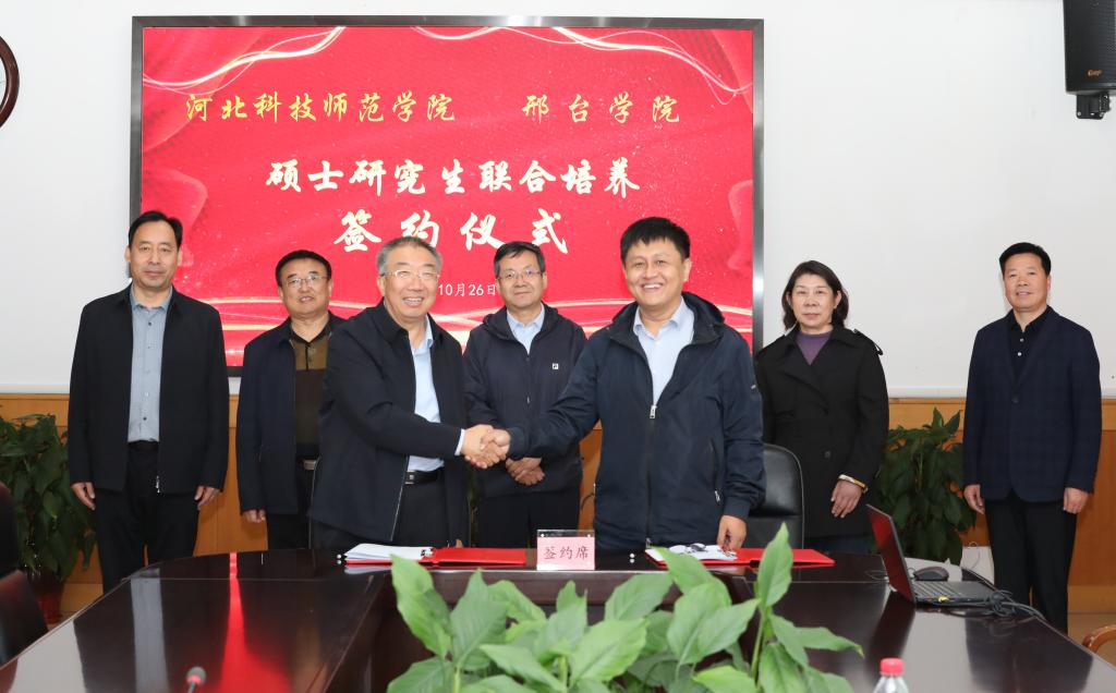 10月26日下午,我校与邢台学院举行硕士研究生联合培养签约仪式。校党委书记朱勇,党委副书记、校长郭旭涛,邢台学院党委副书记、校长蔡振禹出席签约仪式。郭旭涛、蔡振禹代表双方签署联合培养协议。会上,双方围绕研究生联合培养要求和质量保证等相关事宜进行了充分交流。