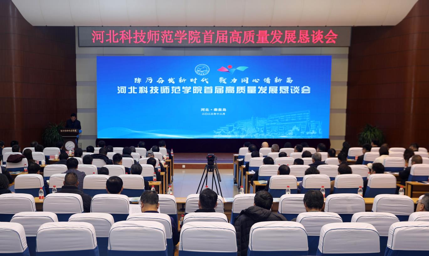 踔厉奋发新时代,勠力同心谱新篇。2023年12月9日,我校以“戮力同心,建设特色鲜明的高水平应用型大学,为经济社会高质量发展做出更大贡献”为主题的首届高质量发展恳谈会在秦皇岛校区学术报告厅召开,来自全国各地的优秀校友代表欢聚一堂,共叙情谊、共谋发展、共话未来。秦皇岛市相关领导、校友代表、全体校领导、中层正职干部出席会议。