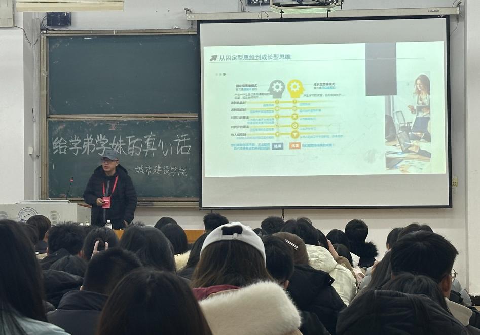 城建学院邀请杨立勇校友作专题讲座。城市建设学院邀请北京震立集团董事长杨立勇校友以“给学弟学妹的真心话”为题作专题讲座。他分享了自己毕业后从一位初出茅庐的学生,最后成为有20多家分公司董事长的奋斗历程和成长故事。杨立勇从进入社会前的心理准备、任职能力的提升、学习必要的工具技能三方面结合个人经历与当代社会现状,用幽默风趣的语言引导同学们要厚植教育情怀,不断提升自身素质。在交流互动环节,认真细致回答了同学们在专业认知、就业选择、大学规划、行业发展等方面的疑问。