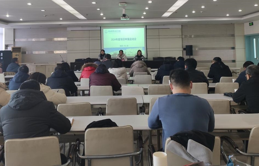 2023年12月22日,我校召开2024年度项目申报动员会,副校长杨越冬出席会议并讲话,各二级单位分管科研工作负责人、科研秘书、科研处工作人员等60余人参加会议,会议由科研处处长张海华主持。