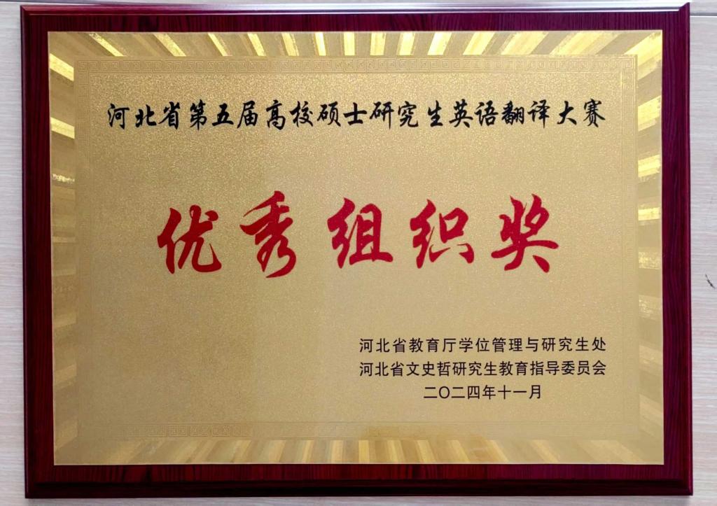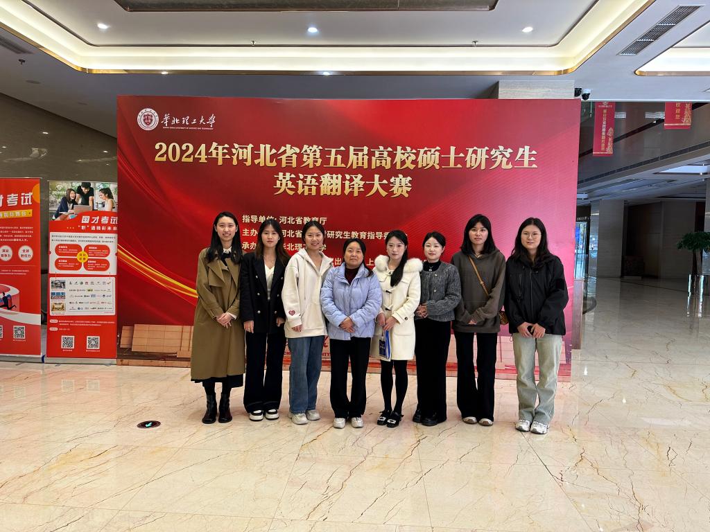 2024年11月1日至2日,河北省第五届高校硕士研究生英语翻译大赛决赛在华北理工大学举办,此次比赛共有来自全省23所高校的154名选手参赛。我校选派的7名研究生在这场激烈的角逐中表现出色,在口译项目中,孙荟茹同学荣获二等奖,王凯伦和谷漫同学荣获三等奖;在笔译项目中,刘悦、段佳欣、杨林威、李子妍四位同学均获得了专业组笔译三等奖。我校获得优秀组织奖。