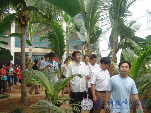 图为我校全体新教师在学校实践教学基地—集发生态园热带植物园参观