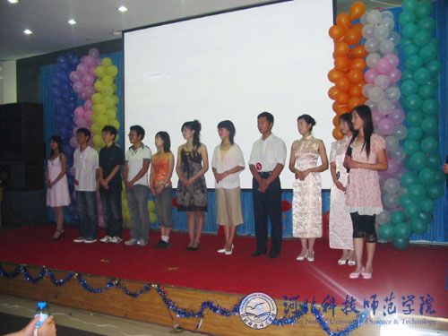 2008年6月20日晚7点,我校第二届校园主持人大赛决赛在开发区校区主楼学术报告厅举行。本次活动由党委学工部、学生处、团委主办,院学生会承办。李玉华、徐树君等相关单位负责同志应邀观看了比赛。中文系副主任苏君礼、秦皇岛广播电视台刘欣、肖波,今日报道栏目记者刘宇新及院团委相关教师担任了比赛评委。共有10名优秀选手参加了决赛。