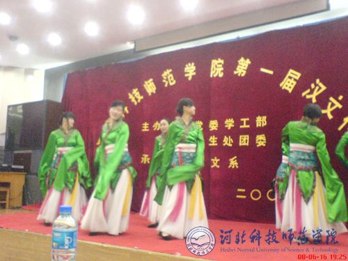 图为我校首届汉文化节唐朝风情舞蹈《踏歌》演出现场