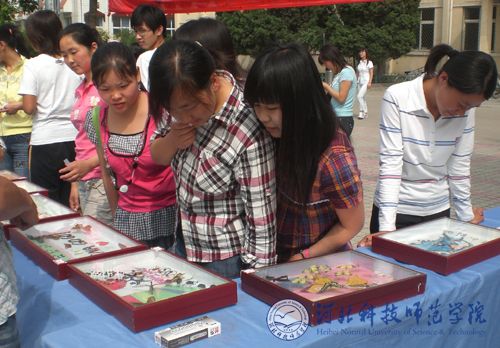 6月15日上午,我校农学系在昌黎校区图书馆门前举办了“心系奥运、情寄四川”第三届DIY昆虫标本比赛。 参赛的三十余件昆虫标本作品创意新颖、构思巧妙、形态各异、精彩纷呈,吸引了众多过往师生驻足观看并为自己欣赏的参赛作品投上宝贵的一票。活动现场还进行内容丰富的有奖知识问答活动。 本次比赛征集的昆虫标本作品集为奥运加油、为四川灾区人民祈福等丰富内容,共同表达全国人民万众一心、众志成城,奋力夺取抗震救灾胜利的信心和决心,以及对2008北京奥运会的热切期盼之情。