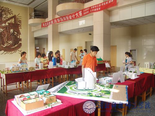 此次大赛共从送交的作品中磷选出15件优秀作品参加了展出。参展过程中,过往师生纷纷驻足欣赏,留下建议,并为自己心悦的参赛作品投下宝贵的一票。参赛作品均是同学们抓紧一个多月的课余时间精心设计制作而成。展出作品以民用建筑和工业建筑为主要内容,体现节能环保的建筑理念。纵观都市繁华的高楼大厦、人性化的住宅小区、寓教学娱乐为一体的教学建筑等到独具匠心的参展作品,淋漓尽致地体现了参赛者的创新思维和较高的审美观念。同时,在四川大地震的阴霾还未散去之时,一幢幢精美的建筑模型让我们看到了未来的希望。