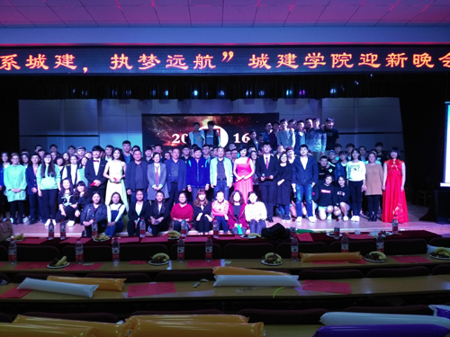 2016年10月17日晚,城市建设学院迎新晚会“情系城建,执梦远航”在老楼多功能厅举行。城市建设学院党政领导、16级辅导员班主任及全体16级学生参加本次活动。